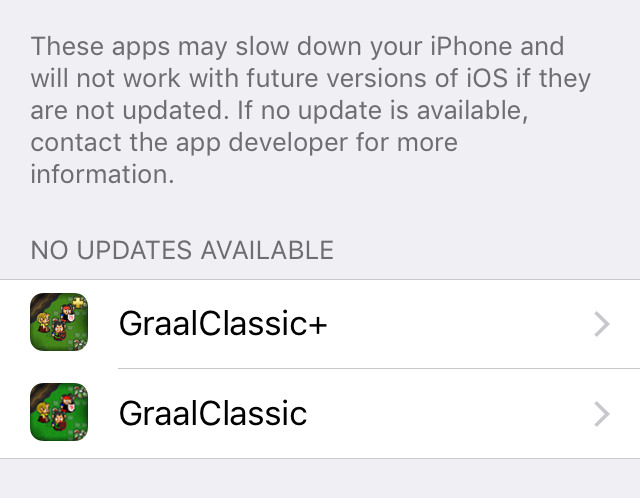 Some of you are familiar with the notifications Apple sent out a few months ago about apps running slow and that is due to apps being 32-bit something Apple no longer supports. Starting with iOS11 Apple will no longer support 32-bit apps at all and they will not be playable, Graal will be updated before this change takes effect. |