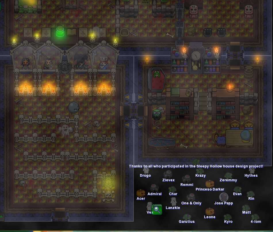 Please note that we encouraged players of all skill levels to participate - the only requirement was to have 2 statues and some furniture to build a location in our re-imagining of the town of "Sleepy Hollow" and that the design was something in regards to the theme of the same. Players with more experience thus helped out players with less experience, creating an event where not only were we building, but also learning how to build better! |