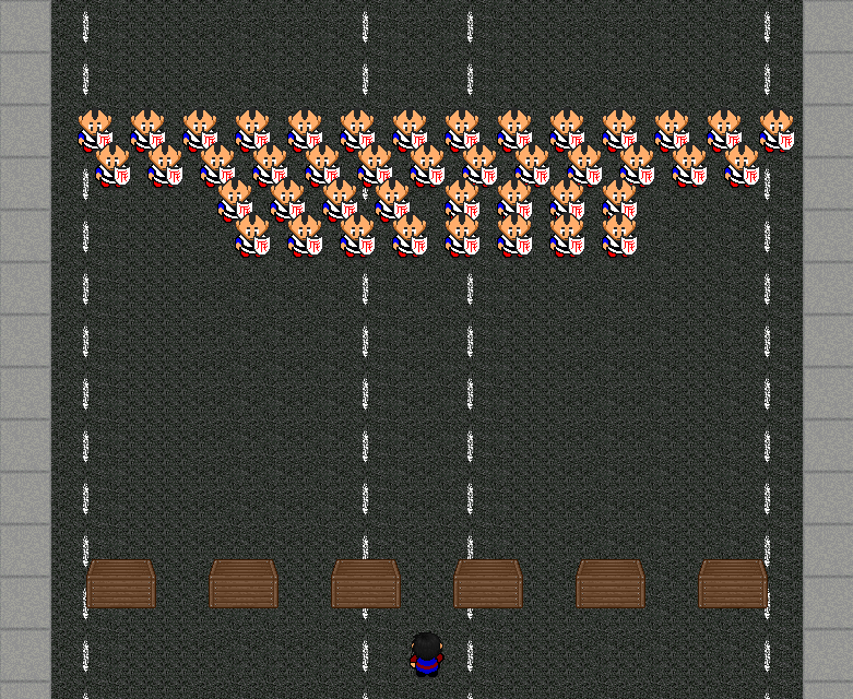 This Minigame is pretty easy to play. All you have to do is shoot the Noobs before they get to you. The Noobs move side to side, and every time they do, they go down a row. On the first wave, the Noobs have no weapons. On the 2nd, 3rd, 4th, etc. waves they will have weapons, and every 3-5 waves, they will have a better gun. The boxes are like the protection in Space Invaders. They can get shot a certain amount of times, then break away. Each wave, they regenerate. High Scores will be based on what Wave you got to before dying. |