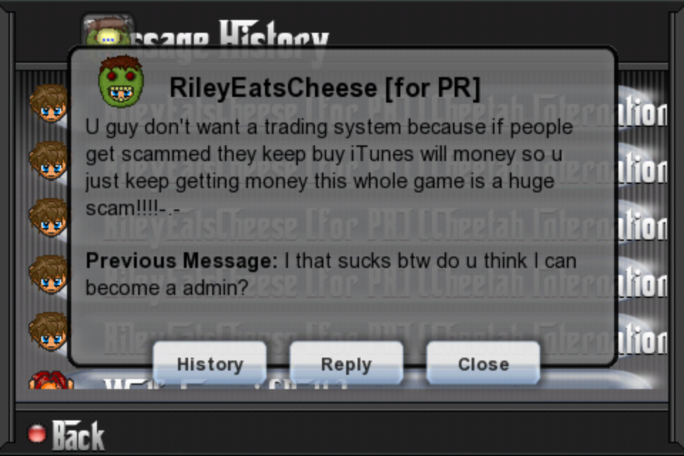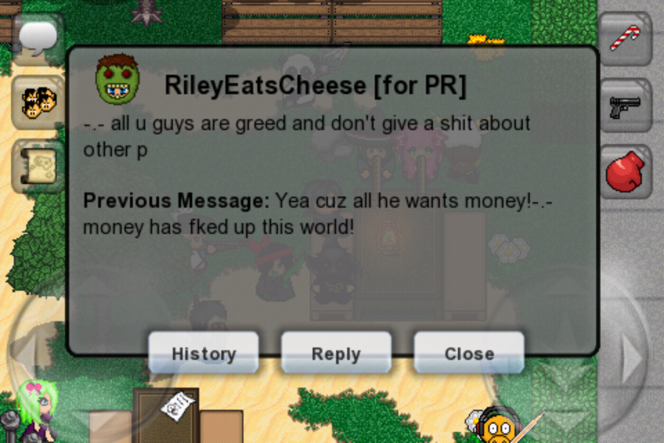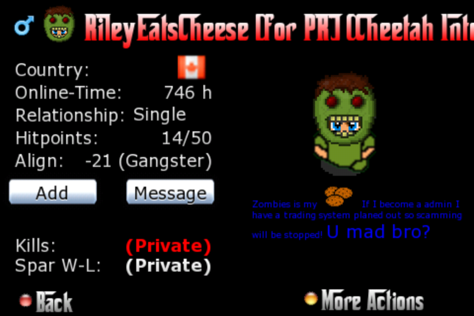 My cousin plays graal and he's like 9 I told him the tale of the people with yellow names. He said to me "Can I be admin?" I died a little inside. But really I KNOW people who get boners when they see an admin.