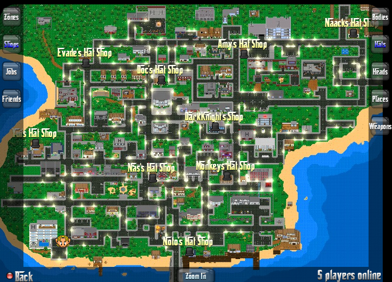 As you can see, when you select the Map button and 'Shops' button (On the left) it brings up the menu on the right.