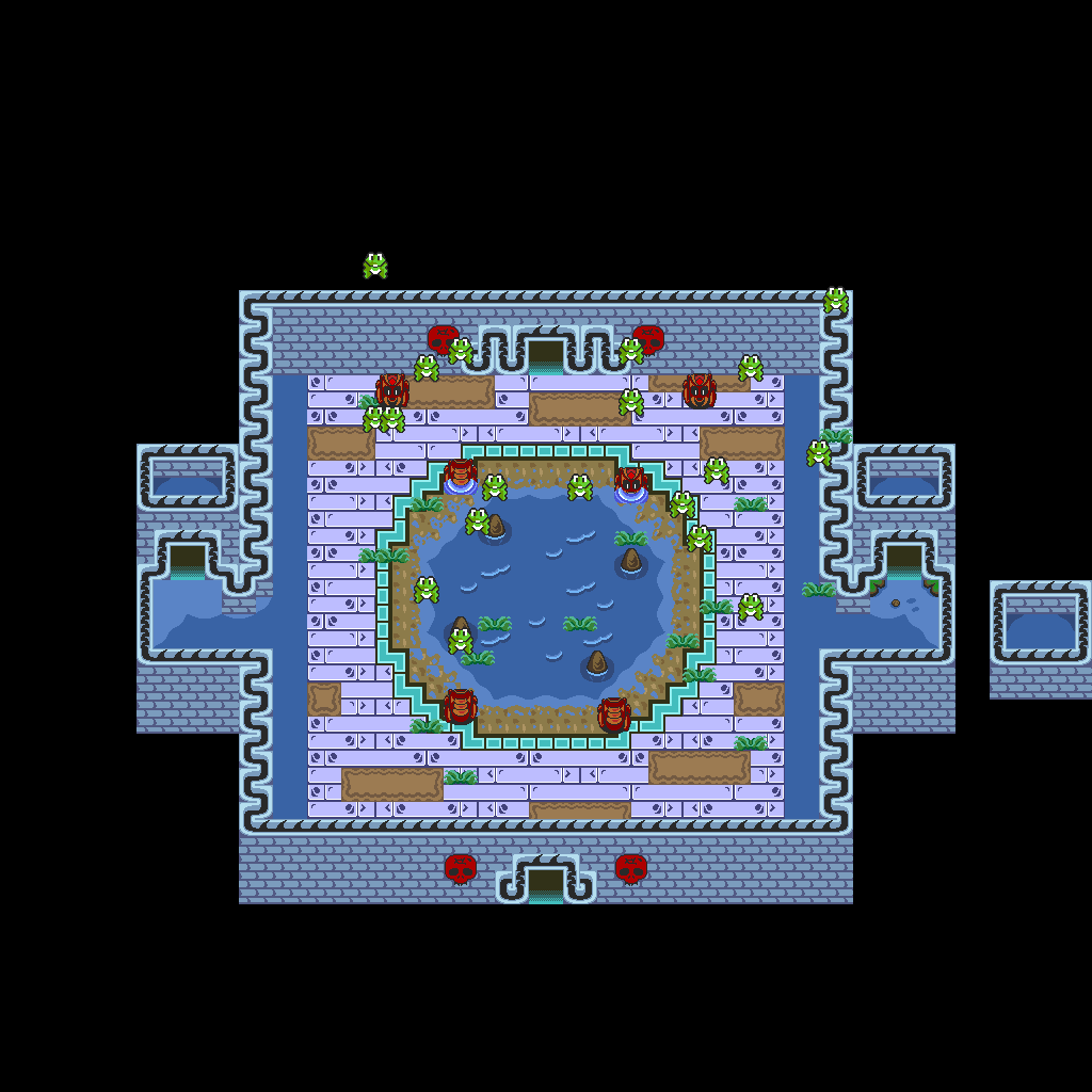 The graal of water quest, though never complete due to baddy issues and weapon issues (namely the birdshot, which is pretty much equivalent to a hookshot), did have a complete set of levels and puzzles. A lot of the clientside code was written pre-GScript2, which would no longer be supported (in contrast to the castle dungeon quest I posted about earlier). This is the first level. You get approached for help. That's pretty much the deal here. Here we see one of the first central levels, i.e. you might have ended up coming back here many times. That whirlpool shaped thing was actually replaced by an actual animation, but it was there to signify in the tiling where those would go. The whirlpool affected the players movement like you'd expect (that scripting was done). It would dump you out in another level. Here's the level it would dump you out in. The doors here would be numbered, and you'd have to keep track of them in order to complete the quest (hinted by an NPC in another level). The door you chose would be different depending on what path you took in another level. This was a path choice. It was filled with blocks that you could move, but only in the sense that depending on which way you moved the first one, you'd end up at only one of those two doors at the right side of the level. Only one of those whirlpools actually took you somewhere, but I bet on you being worried about picking the wrong one. The other would take you somewhere else, but only after the quest was complete. Here is a screenshot of the boss that I provided earlier in the thread depicting the boss battle. After the battle, you could obtain the Graal of Water (or whatever it was called). Before that, however, you'd have to get through this maze that I posted a screenshot of earlier. |