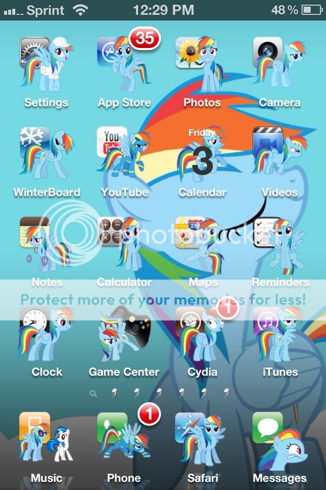 The only reason I jailbroke my phone was for a Rainbow Dash theme (lol), and a couple other tweaks like Mobile Terminal and iFile. Spoiler