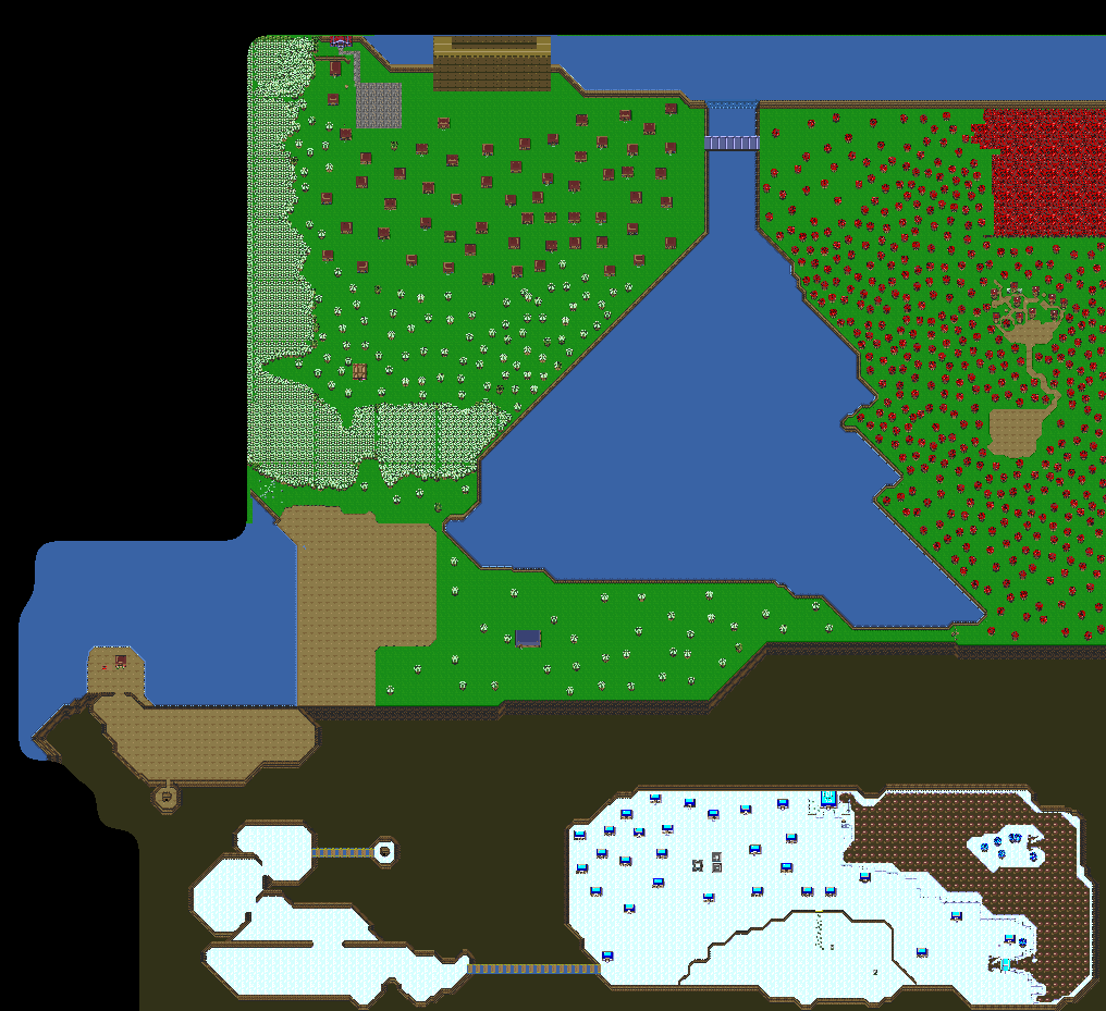 Overworld... well v1 anyway, the lesser quality version. Done! If anyone here thinks they would have fun adding quality to the levels, I'd be really happy ![]() The whole map is 25x25 but chapter one is about 12x14. By the way, I figured out a way to save an offline game