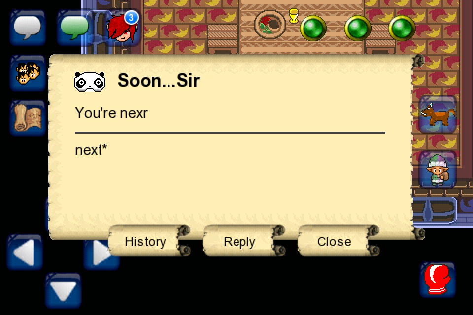 Okay, so I usually don't tell stories, but this one was just absolutely hilarious. I was playing graal as usual, and decided to satisfy my hunger with some cereal. So I left my ipod on the table. Little did I know, when I came back to it, that I would see a strange figure resting at the top of my screen. ![]() After reading his name I was thoroughly freaked out, then I blinked, and presto! He vanished. Like magic. So I just shook it off. What could a player on graal do to me, anyways? Right? ..... Right? But when I was sitting above the battle arena 30 minutes later, almost like they were waiting for the appropriate moment to strike, these ominous panda men whisked out from the shadows and trapped me like a rabid dog, fending for its life. ![]() Of course, I blinked, and they were gone again. I thought it was finally over for the next few hours. There was no sign of my friendly stalkers to be found anywhere. Until I got this PM. ![]() Again, a chill shivered down my spine. These guys know how to freak a brother out. Because all of this action was happening in graal city, I decided to travel to snow town. You know, its less likely they will find me there right? Its absolutely logical? Nope. They somehow followed me, I didn't even see them until these magical panda men materialized on the bottom half of my screen. And challenged me to a rap battle. ![]() Of course, I lost. You know me, I can't rhyme for ****. My swag meter is basically zero. But then I was greeted with another challenge, something on the lines of "you must meet your fate." before this panda man disappeared again. Moments later, my benevolent creeper greeted me with an invite to his house. For some reason, I accepted. A push and a shove later, and I was looking at my screen,staring at this: ![]() They eventually kicked me from the house. Then the panda men told me "It was done." This all occurred last night. But finally, at the dawn of this morning, I received one last PM. I guess I will never play graal in peace, for some reason I'm fine with that!