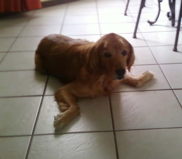 Haha, His tail looks like a turd. It'd be funny to see it when its tucked between his legs. |