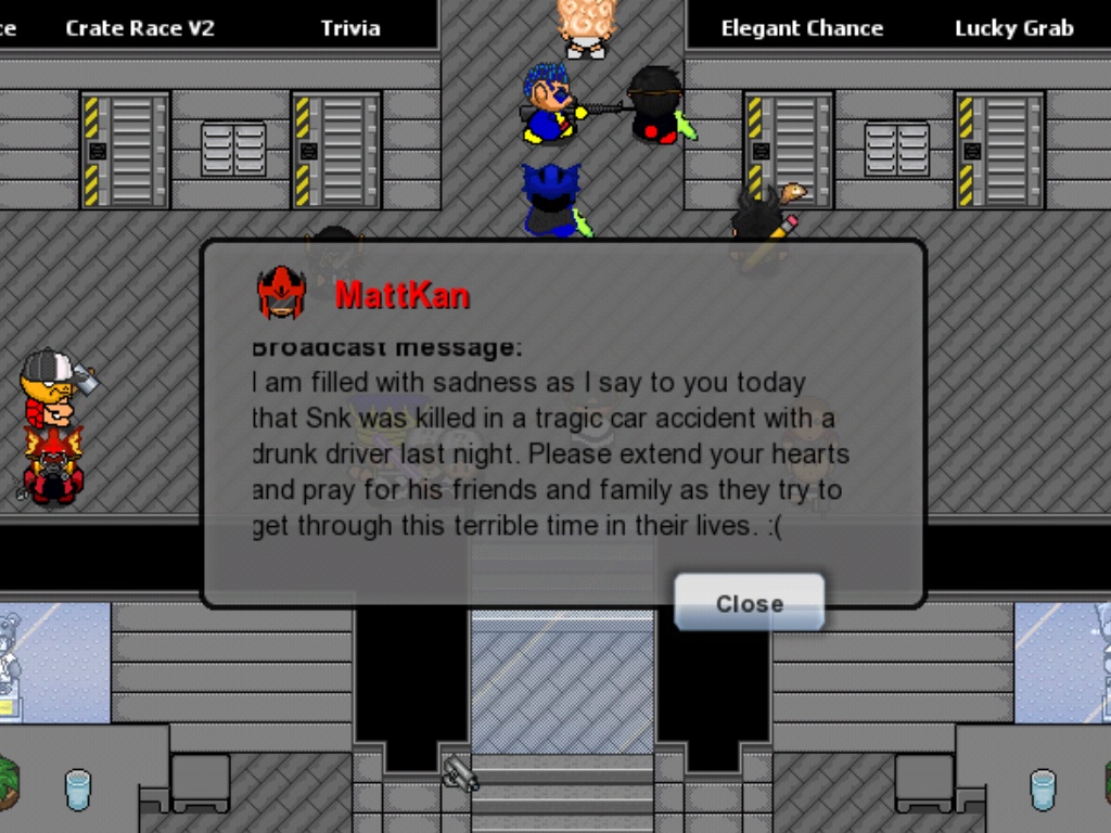 Anyone else remember the broadcasts that one of the staff members made about snk dying in a car accident by a drunk driver and how graal was going to be shut down? That was a funny one. I remember talking to the staff member that did that and he said that he got a bunch of rage messages because some kids parents actually died like that. Anyway, happy April Fool's Day. Hope you don't get fooled too hard. Have fun
