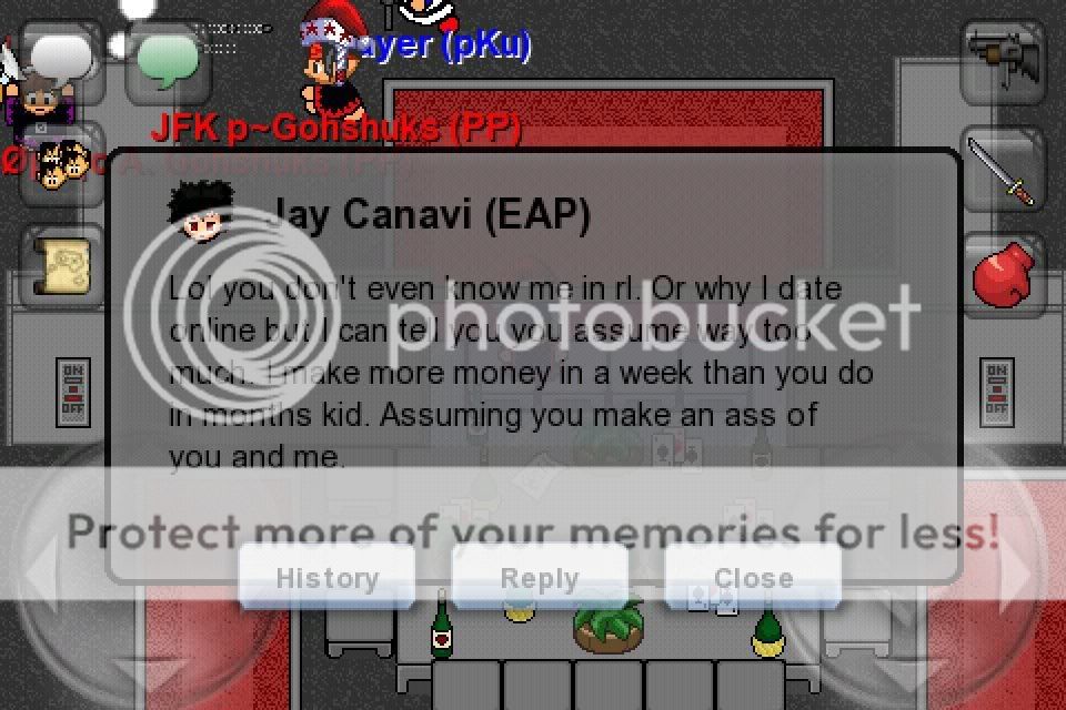 I wasn't referring to Froggy's idea. Stop assuming. Also you don't need to be a smartass HP. It makes you look worse than you already are. I like froggy's idea of giving it to older players rather than newer ones but i'm disagreeing with era new's idea about the first 1,000 players only recieving it. Almost none of those players still play era. That idea is stupid because your celebrating the first players not era at all. Either way if it was celebrated more than likely it would be a celebration everyone can have. No need to show your stuck up self in these forums. I've seen enough of your bad attitude on era And don't even bother arguing with me. I've had enough of your **** HP. You harass people way to much and I get sick of little kids like you thinking you can harass people. Grow up kid. |