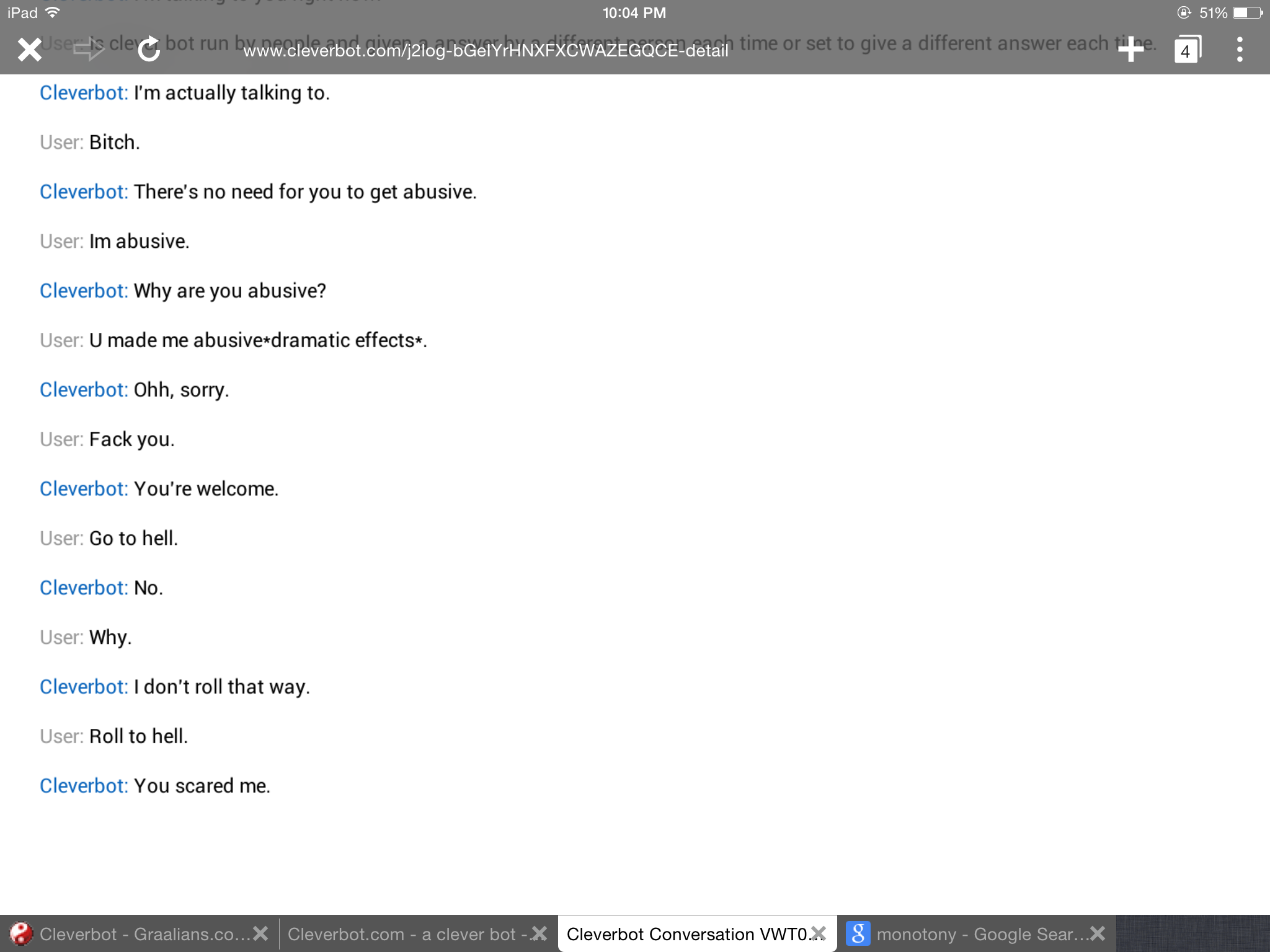 I have talked with cleverbot,and i have some interesting photos to share.please,dont mind the ads.