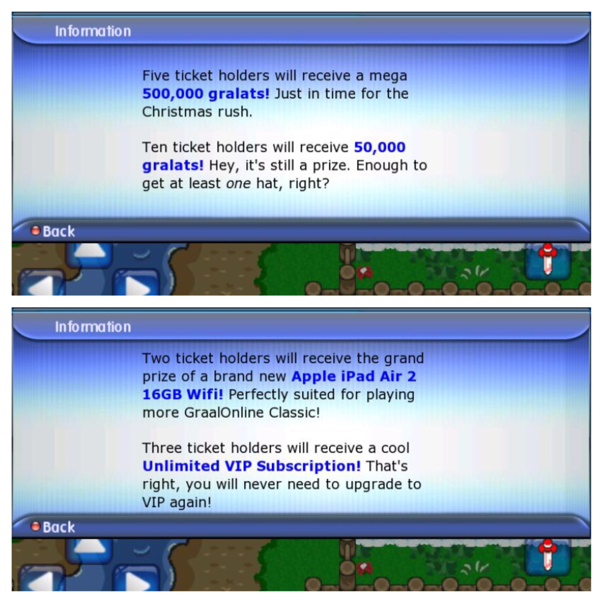 I FOUND OUT WHY CLICK ATTACHMENT Basically a "Grand Prize Draw". Players collect tickets by Saturday and I'm assuming whoever has the most tickets will win each of those prizes. I'm going for the unlimited VIP since I already have that iPad. |
