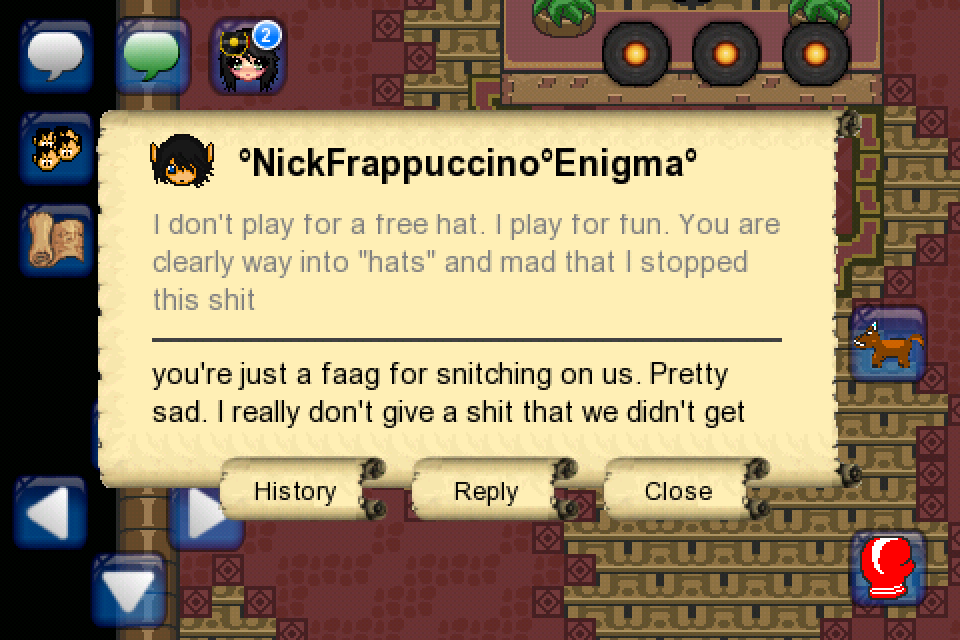Lol he got butthurt and said all this. Looks like my job is done here. last message is cut off. "It's just soooo sad for you to snitch. He soon after said "go die (female dog) |