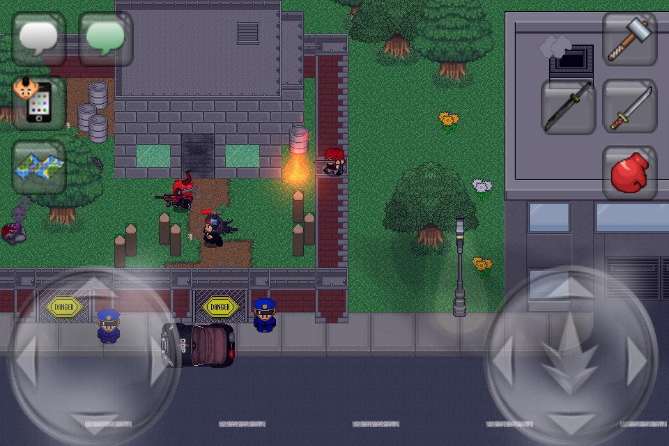Old Glitch - At the top of the island, (can't really show where it is, dont know how to put a pic) But to be specific, its at the top left of the map, then move a little to the right, and your see a danger place with 2 cops around it. Well, the walls are all bricks, but there are metal parts, using a melee, you can go through and get into the sealed area. I wouldn't mind showing it Graal917900