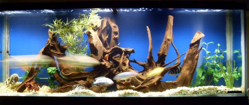 As promised! The first image is to give an idea of the size of my tank. It's 6 feet long and holds about 150 gallons of water. That's a slightly older pic; you can actually see some our poor-fated goldfish in it. They were there to help prime the tank for placing more expensive aquarium fish in it--usually the primer fish die off, only put in to help the water become inhabitable by other, more desirable fish. Their natural biological processes cause this change in the water, so goldfish are preferred to do it since they eat and **** more than like every other fish you can get. Makes you wonder why they are so popular as pets, but then the other half of the story explains why. They don't flippin' DIE. These goldfish were persistent and even survived the tank priming... only to be brutally murdered by the cichlids we added ._. I was calling my parents the Michael Vicks of the aquarium world for a while. The second pic is more recent and was taken in the dark with the light on. Fish are kinda hard to photograph, but I love how this photo shows their personalities so well. The striped leporinus on the right is chill, just kinda floating around, the cichlids in the middle are always in leisurely movement, and the tinfoil barbs are spazzing back and forth across the tank constantly. When you have aggressive fish like cichlids, you either need larger/faster fish that can keep out of their reach like tinfoil barbs or equally aggressive fish like leporinus. Everything else will perish and you will be likened to Michael Vick. |