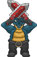 You have light sources contradicting each other. The shoes and pants lack any actual dimension with their shading. The belt doesn't look like a belt, but merely the upper part of the pants. Dithering isn't very Delt styled. The swords seem to slant at the top. Overall a nice piece, just minor errors that could easily be fixed. |