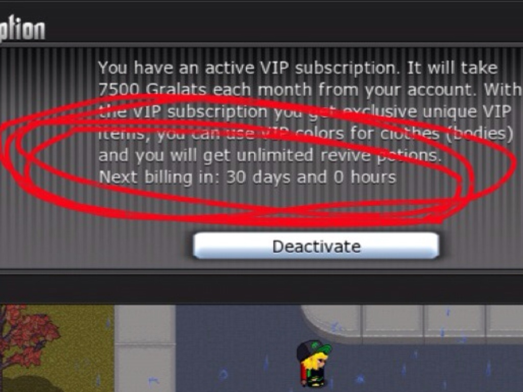 Read the description, "It will take 7500 Gralats each month from your account." Thread closed due to the fact this issue has been resolved. |