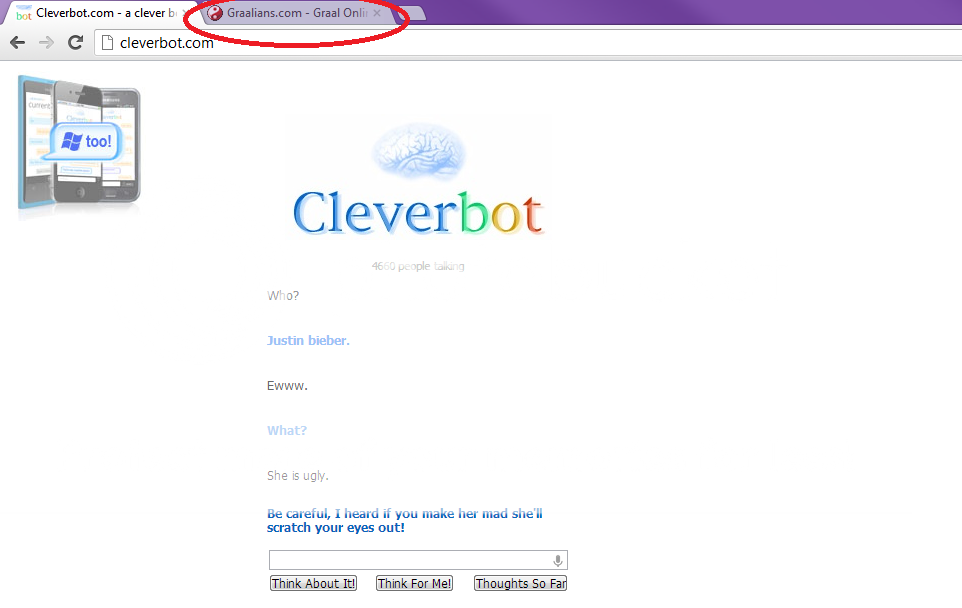 -claims that her name is 2i and when i ask if its true, than its not. when i ask again what 2i is than i get '4' as response