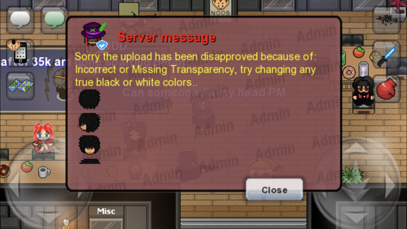 So i have been looking for a head recently and i found a few that look pretty cool, but have a gif. I uploaded each of them all with and without transparency and yet they still get denied for transparency. If anyone can help me with this, it would be greatly appreciated. Thanks.