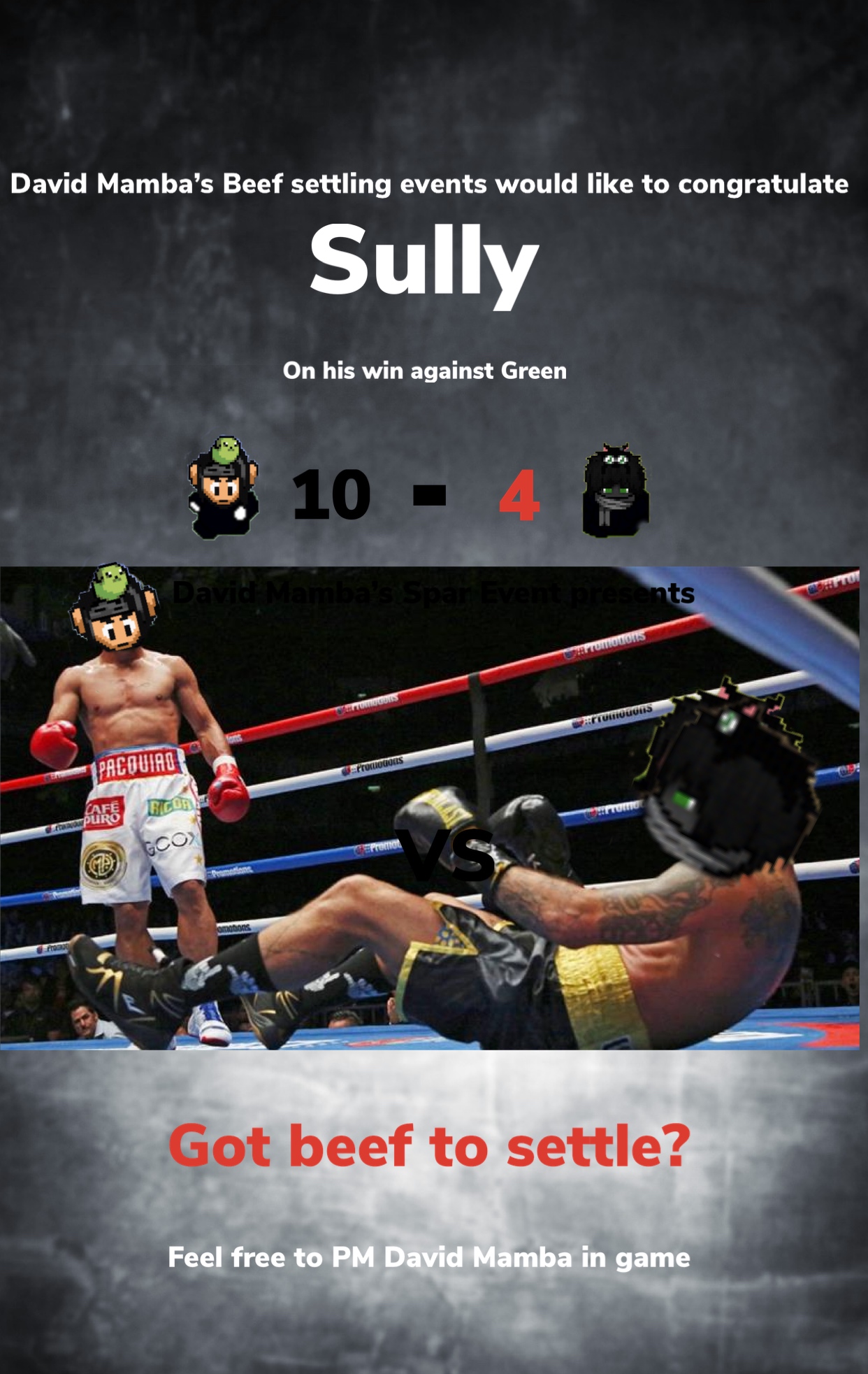 Damn, missed it. Hopefully the beef was cooked to perfection. Congrats to Sully. Should see more spars like this.
