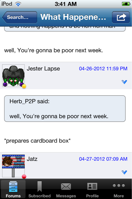 And never mind Kane. Apparently it was a different thread in which I had said I bet it won't be that big and it will probably be small like the rest and you said "you'd lose that bet" or something. Never mind ^.^ well glad to hear you're still working on it coop Yes I spent the time actually looking for it. Totally different thread. Sorry Kane :p |