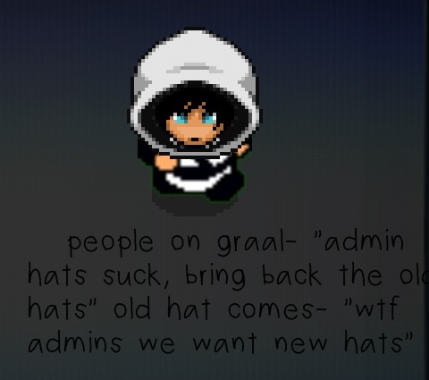 I don't really consider it being all about the hats. The hats just make your graalian look good. You can't blame new players just wanting a rare hat. Maybe it's not rare anymore, but at least new players get to have some hats. |
