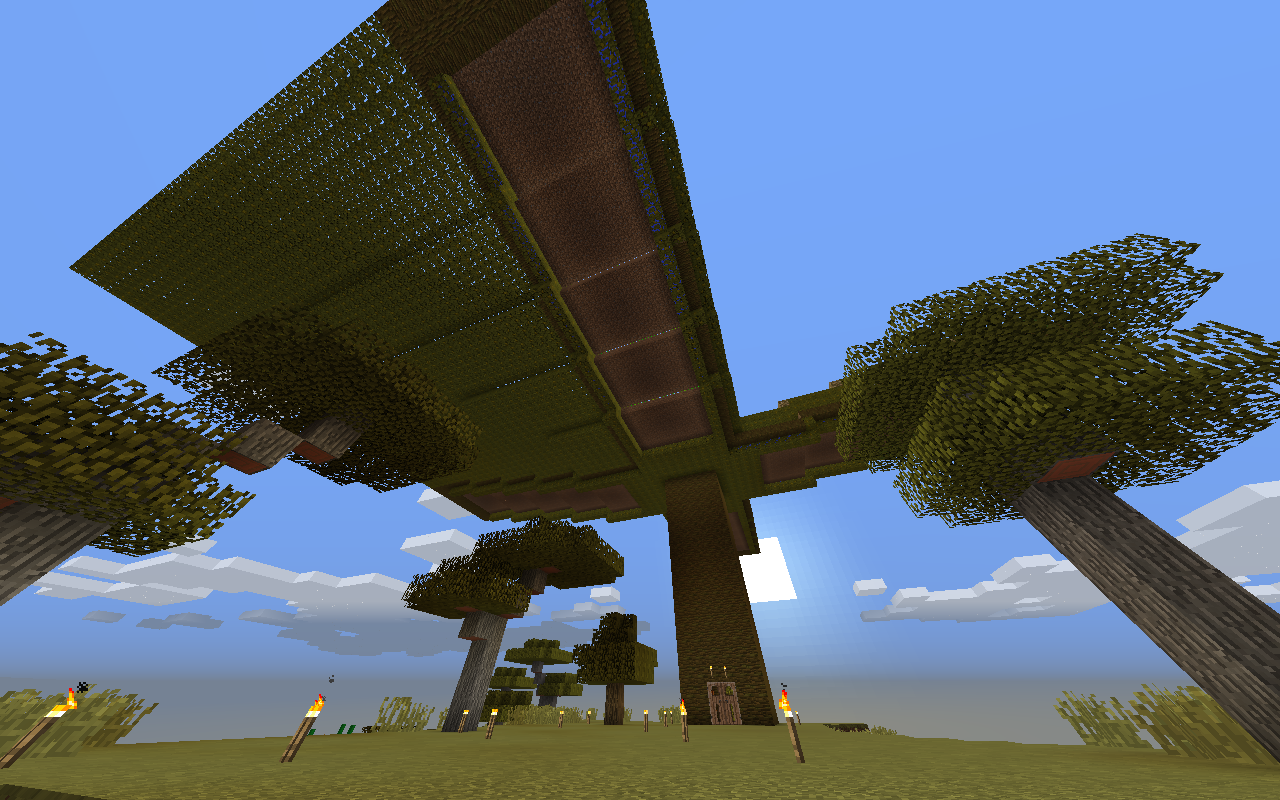 http://www.graalians.com/forums/atta...1&d=1440461527 The inside of the tree has a ton of cocoa pods growing. I don't really know why I did this. http://www.graalians.com/forums/atta...1&d=1440462283 There are four lanes that have a different crop in them. There is currently carrot, wheat, and potatoes growing in three lanes. The fourth lane will be for Beetroot when 1.9 is released. Each lane should be able to contain 248 crops. When crops are ready to be harvested, a single press of a button will bring down water into hoppers, which is then fed into a large chest. http://www.graalians.com/forums/atta...1&d=1440461541 The essential parts of the farm are finished. All that remains is to make the thing look like an actual tree, which is going to take a lot of jungle leaves. http://www.graalians.com/forums/atta...1&d=1440461563 It took me a lot of jungle logs and leaves to make it. I think it's worth it. It's probably the nicest looking thing I've made in Minecraft. |