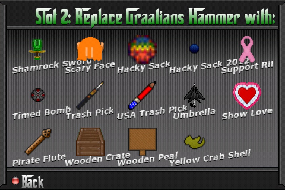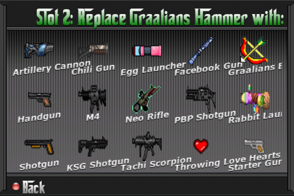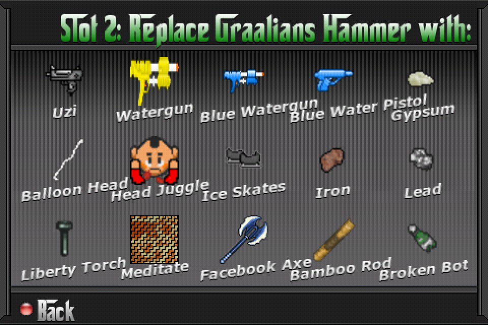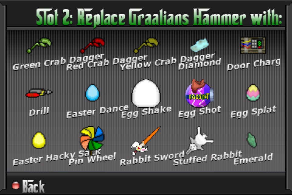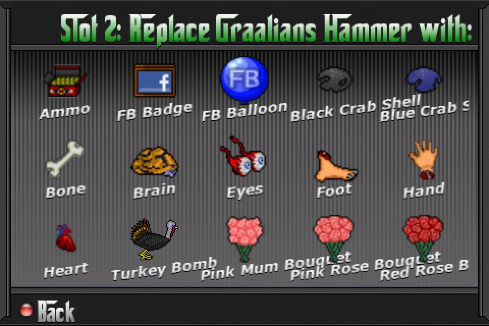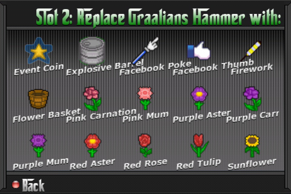 You simply go on your facebook, go to: http://apps.facebook.com/graalera, then identify the noob account with the same email as your idevice one, then go to the building, use the acquired facebook badge, which will make Hearts let you pass, then go inside to a room with an NPC with a Fb balloon, upload a screenshot to facebook, you'll get the balloon and a door will appear, go inside and you'll find them on 2 tables. 50 invites for the axe, 500 invites for the gun. Hope I helped. |