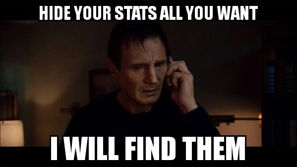 Would like my stats private, cause I don't like people knowing that I have played a lot. You are either called a nub or a no-life. |