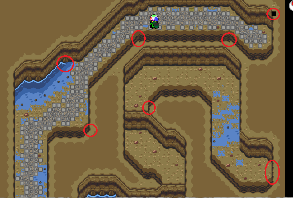 I was the person who initially tiled those big mountains, so I know cliff tiling (albeit this is a different tileset so I'm not impervious to error). Also, I've had training in wildlife tracking. Anyway, here's another error south of Swamp Town. And... another one near that unresolved northface shadow. Another northface shadow error right at Delta Island cave entrance. Adding this next one. I don't consider it an egregious tile error, and I haven't really been reporting this kind of error where it's hard to avoid it. But when I'm done finding the really bad ones, I'll start reporting more of this type, which might possibly be only fixable via additional graphics.