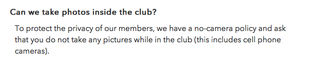 Here is there website showing you can't bring cameras http://www.24hourfitness.com/company/faq/ And here is a screenshot specifically: ![]()