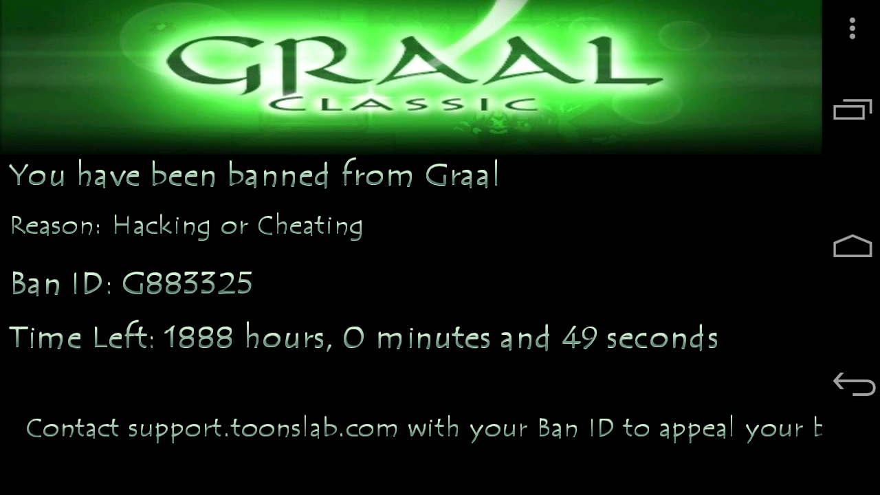So for the past couple of days I been trying to tell to on support how I'm IP banned and I never did anything to deserver a ban and they keep saying "the account does not appear to be banned. If you are still banned, please check the ban id to make sure you gave us the correct ban id" and once again like I keep telling them the ban I'd the message third message I sent to them was so i come back to graal online classic to find myself banned but i have not done anything wrong again as i had a issue with my account being so called banned while using wifi thats why i dont use my account on the wifi anymore because i cant play which idk why but now i come back to graal and find out im banned on my 4g network as well now like whats going on here ? it keeps saying im banned for hacking and glitching and i havent done any of those things now im banned on my 4g/lte and i cant play on my wifi but i have 2 seperate ID ban numbers and i dont even know if thats even possible? idk if this is an admin playing aroud to be funny or doing it on purpose but i will like my account fixed please as this isnt even fare. And once again they said to check the ban I'd again and like I told then before I'm IP BANNED!!! the account is fine like wtf -_- Can someone help please because there so called tech support is not professional what so ever. |