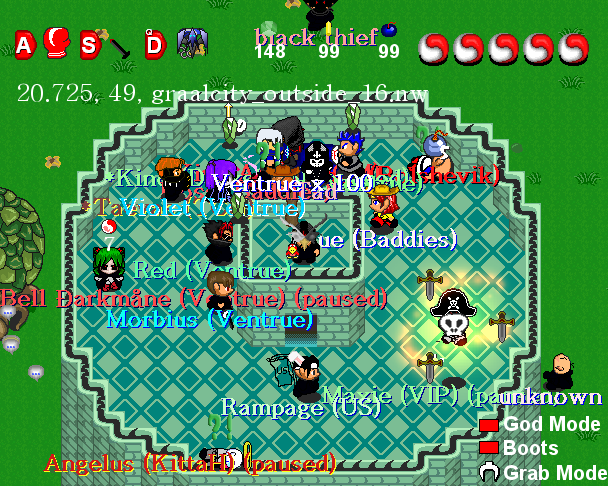 tl;dr: scripting language upgrades. Initially Graal was coded in such a way that everything was scripted clientside, with certain features being handled on the server. A lot of game features had to be moved to the server because people hacked the game client (what you would download to your PC to play) and made the gameplay less enjoyable for other players. It's harder to hack a server (home-turf advantage). As a longer-term strategy, Graal created an NPC server, which basically split scripting from being implicitly clientside or serverside to being explicitly clientside or serverside. There was a generous amount of time given to the volunteers managing the Classic server to convert the server's code to be compatible with the NPC server. Late in the game, I converted hundreds if not thousands of levels. I didn't know much about scripting yet, but I thought that converting the easier levels would alleviate the sense of hopelessness. One day, they cut over, and Master Storm, the manager of Classic at the time, told me that he had pulled an all-nighter just getting a core set of levels up from Graal City with custom movement and hit-detection systems. I saw the code, it was definitely rushed. I became the replacement for the development administrator shortly after. Meanwhile, there was also another cut-over looming in terms of GScript1 vs GScript2, which makes the whole ordeal seem somewhat inevitable in hindsight. The original MoD tower scene actually came much earlier. That screenshot was when it was reintroduced. |