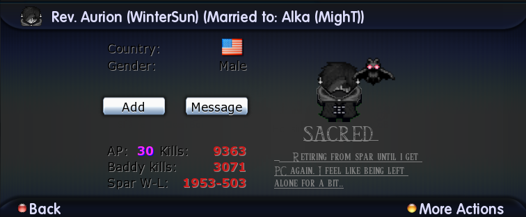 That chart? It doesn't matter if you are active or not. Do you see how Deity placed at the top. I still remember them sparring like once a week and goes offline for next whole week. with that spar ratio, it's sooo weird not to be on there. i mean even smackdown was on it for once. and you said your friends were better than you? so I am guessing your friends spar score is at least 20000-600 or is it 40000-444? man, I totally wanna add them to Pro Sparrer Series!! Special edition!! |
