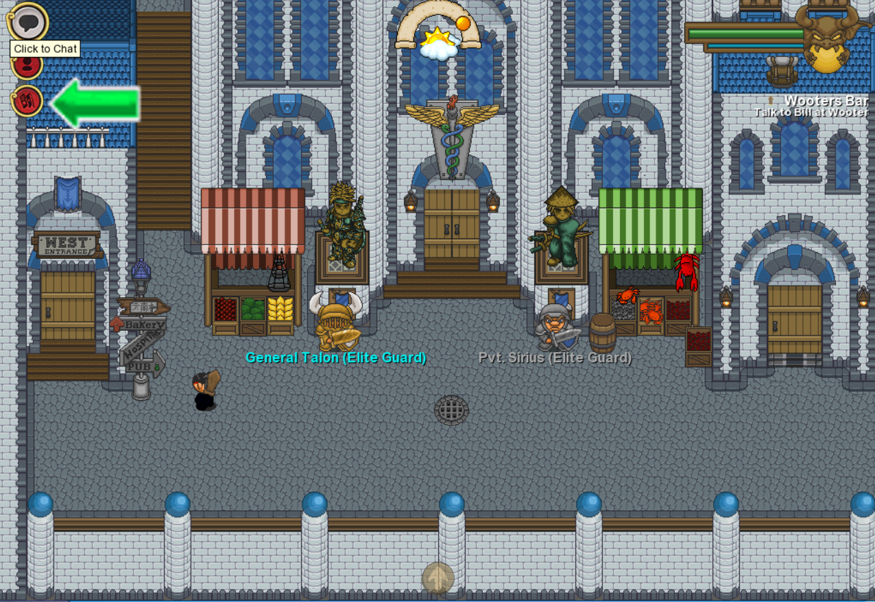 In the quest :"Wooter bar" For the beginners: There should be some help tips indicacting the actions that the beginner must do. (More precisely) for example, an arrow that indicates that this one should take the West Entrance entree. Afterward, another help screen that indicates him that he should look at the map to know where he should find the location quest. This is an example what it could be: (see the attached thumbnails.) — New players could be easily lost and frustated without any guidance. And also: When you log on into Delteria, you always respawn at the place where you saved your last checkpoint and not at the place where you disconnected last time.