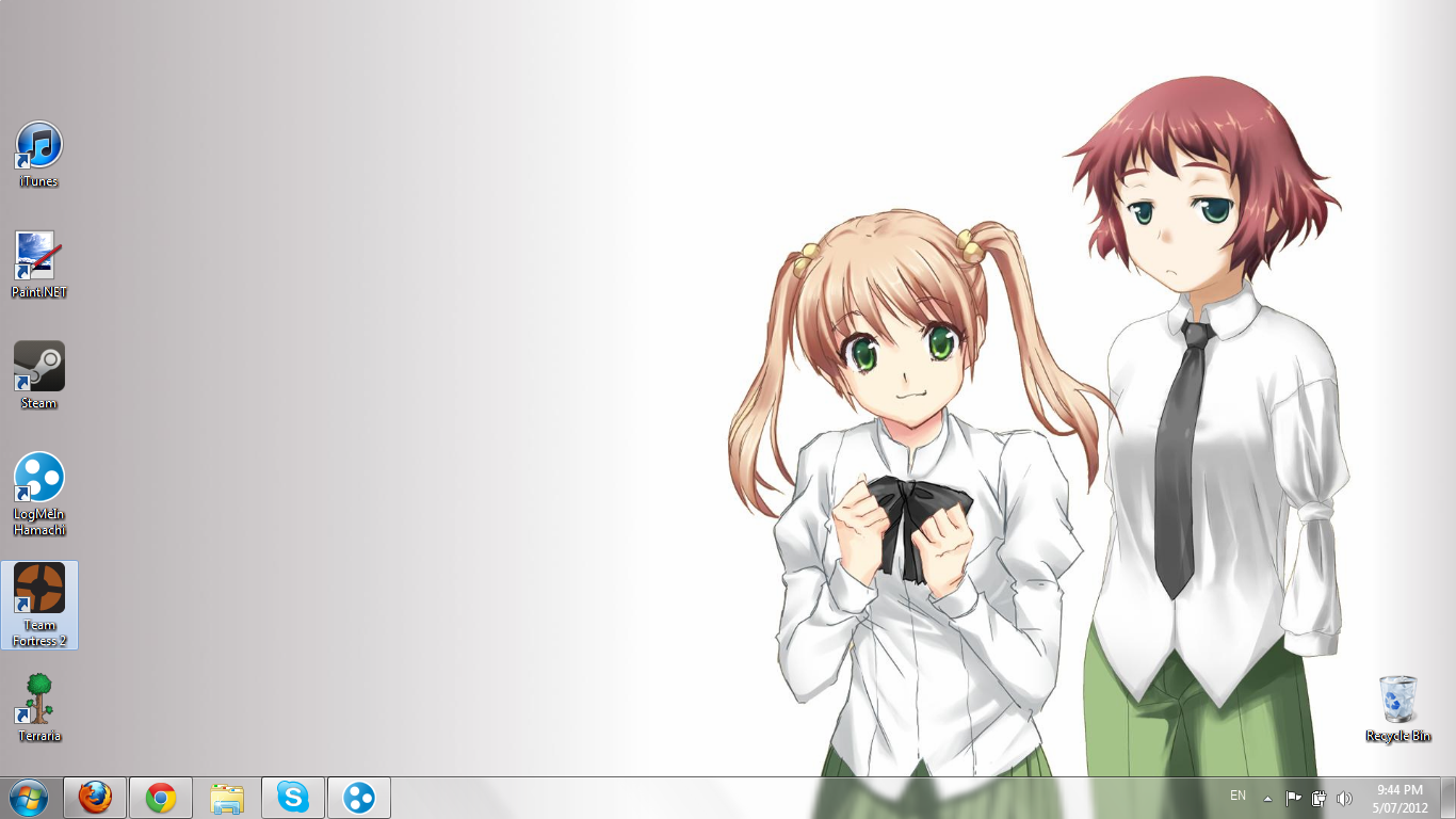 Talon, do your family members (or friends) see you background and... :l Mine is fairly boring, although it cycles through the same girls as my signature. There's one space for a desktop icon up the top left, and I have no idea what to put there, so first person to suggest something useful gets a +rep. Also, I'd appreciate if somebody would teach me how to replace desktop icons with other things, because I've been trying to do that for awhile. |