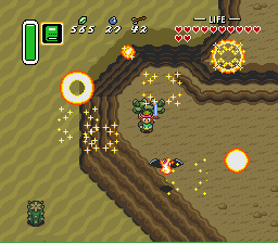 Now bombos... there's a spell. http://cdn.wikimg.net/strategywiki/images/0/0b/Zelda_ALttP_Bombos_medallion.png (Unsupported image host) Killin vultures like nobody's business. |