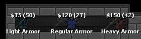 Armor: 5 HP added - 2.5k 10HP added - 5k 15 HP added - 7.5k so on.. But good idea. |