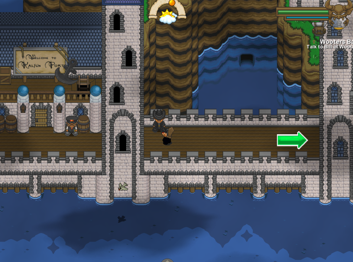In the quest :"Wooter bar" For the beginners: There should be some help tips indicacting the actions that the beginner must do. (More precisely) for example, an arrow that indicates that this one should take the West Entrance entree. Afterward, another help screen that indicates him that he should look at the map to know where he should find the location quest. This is an example what it could be: (see the attached thumbnails.) — New players could be easily lost and frustated without any guidance. And also: When you log on into Delteria, you always respawn at the place where you saved your last checkpoint and not at the place where you disconnected last time.