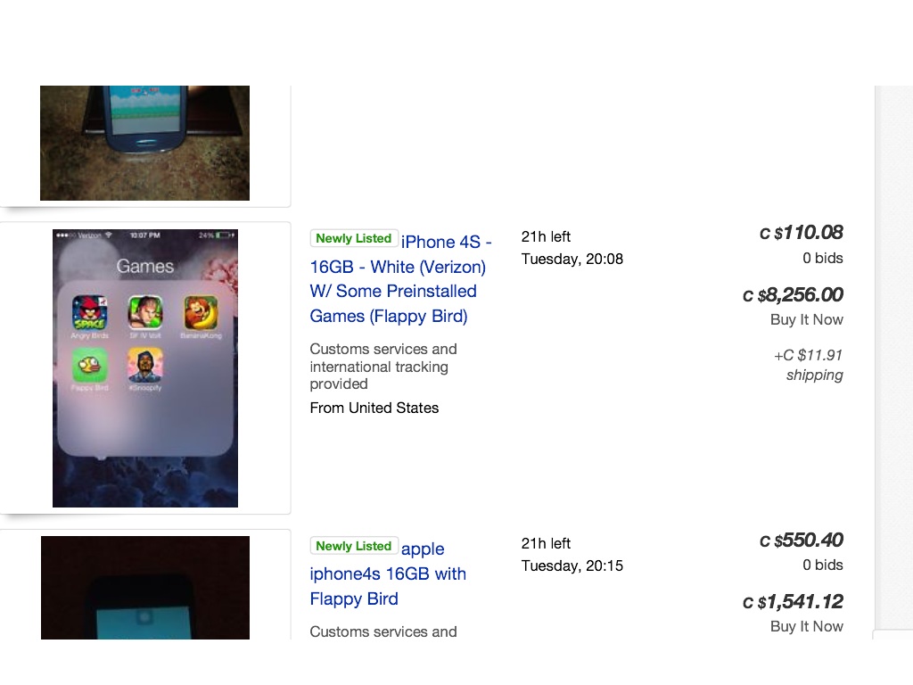 LOL $2k for a device with Flappy Bird. I'm sorry, but that's really f**king funny. I found one selling for over $8k. DEAD SERIOUS. So Flappy Bird is basically worth more than an actual phone with a jailbreak. |