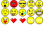 Improvements + New Ones for sake of showing what each is, replace = with : * with ; [ with ( ] with ) { with < } with > ![]() =o >=[ B] =[ =] =,[ =p =z= *] =D =kiss= {3 {33 =brb= =afk= =noob= =3 }_{ ^_^ x_x =?= -_- =blush= =eye= =gun= 2lazy2do .gif atm |